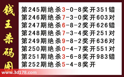 近期3d钱王杀码具体详情: