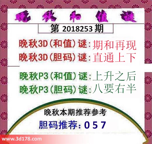 晚秋3D(和值)谜:期和再现