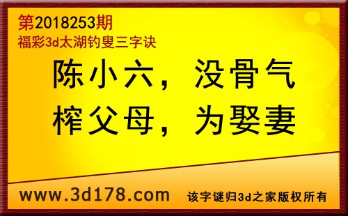 3d第18253期太湖字谜:陈小六,没骨气,榨父母,为娶妻