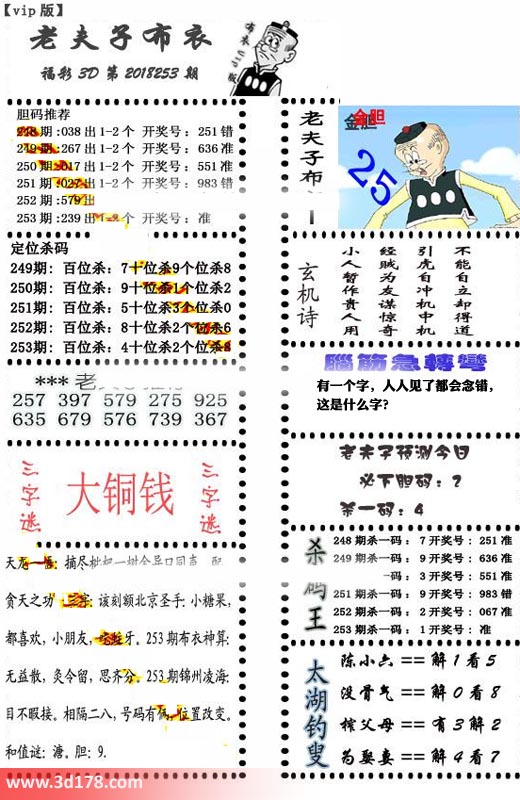 福彩3d第2018253期老夫子布衣图详情: