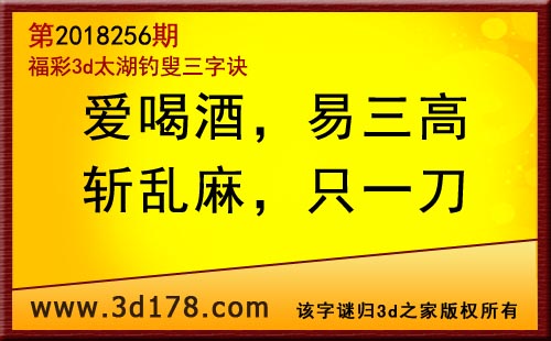 3d第18256期太湖字谜:爱喝酒,易三高,斩乱麻,只一刀