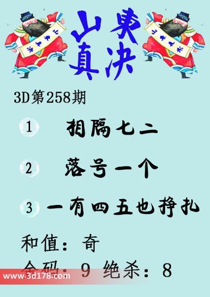 福彩3d第18258期山东真诀图如下所示: