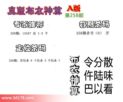3d之家布衣图库之布衣神算图第2018258期详解: