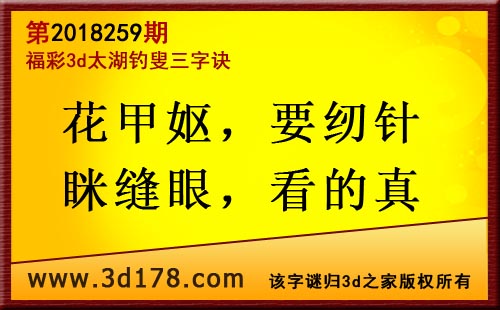 3d第18259期太湖字谜:花甲妪,要纫针,眯缝眼,看的真