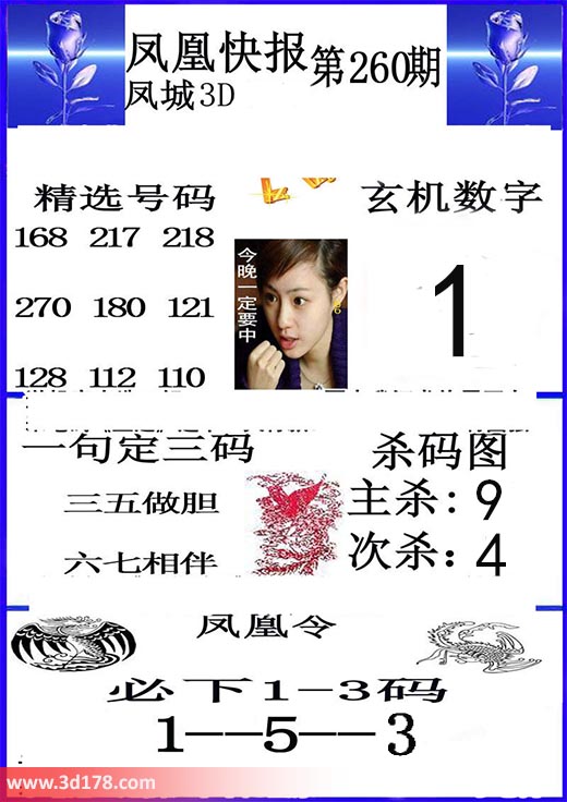 福彩3d凤凰快报图第18260期精选号码推荐: