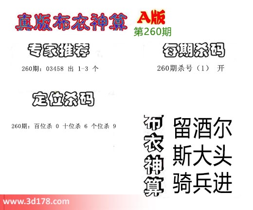 3d之家布衣图库之布衣神算图第2018260期详解: