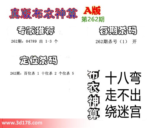 3d之家布衣图库之布衣神算图第2018262期详解: