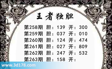 3d之家第263期王者独胆图推荐胆码: