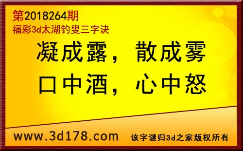 3d第18264期太湖字谜:凝成露,散成雾,口中酒,心中怒