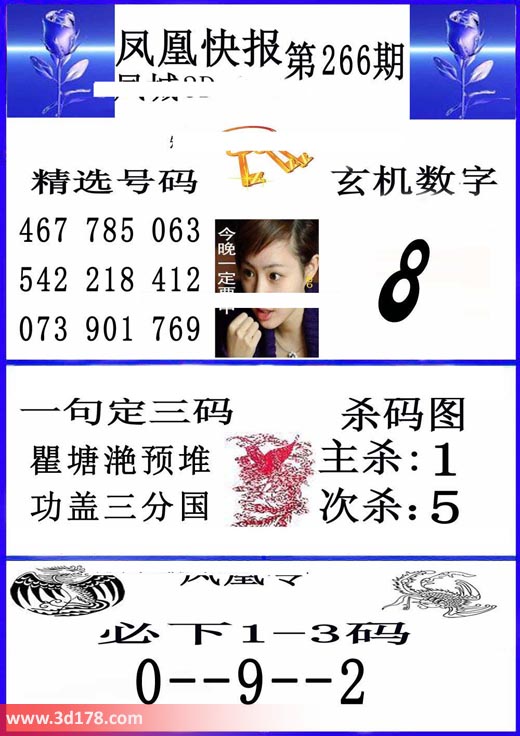 福彩3d凤凰快报图第18266期精选号码推荐: