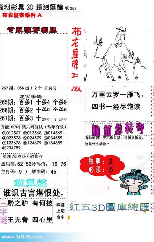 福彩3d第2018267期布衣皇帝A版布衣专家独家推荐: