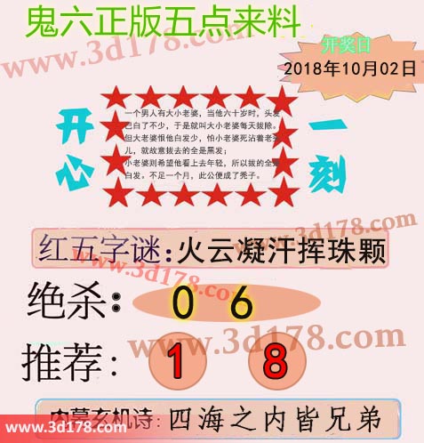 福彩3d第2018268期鬼六五点来料: