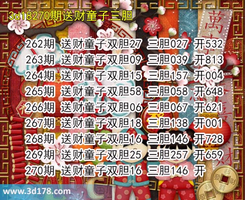 胆码图库3d第2018270期送财童子图: