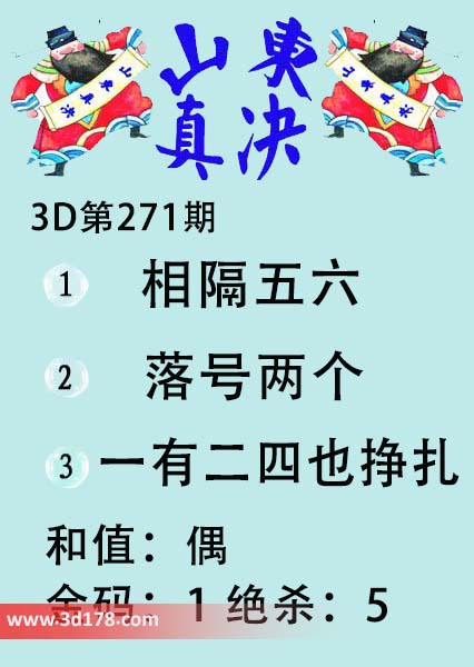 福彩3d第18271期山东真诀图如下所示: