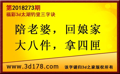 3d第18273期太湖字谜:陪老婆,回娘家,大八件,拿四匣