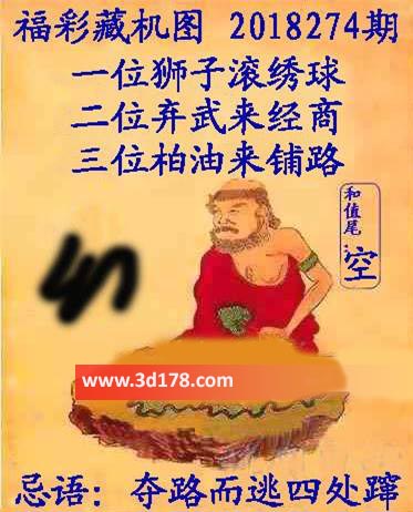 福彩3d第2018274期正版藏机图详解: