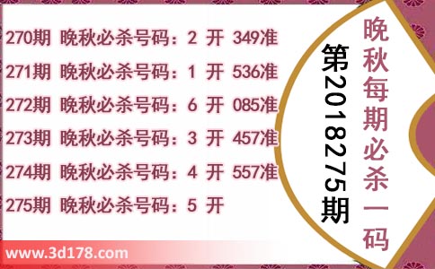 273期 晚秋必杀号码:3 开 457准
