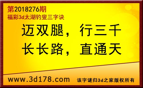 3d第18276期太湖字谜:迈双腿,行三千,长长路,直通天
