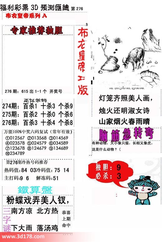 福彩3d第2018276期布衣皇帝A版布衣专家独家推荐: