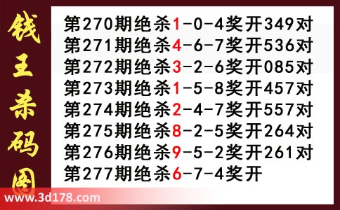 近期3d钱王杀码具体详情: