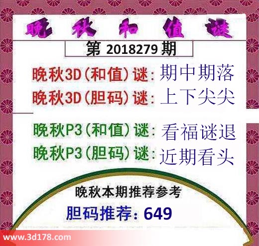 晚秋p3(和值)谜:看福谜退