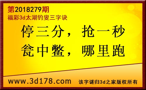 3d第18279期太湖字谜:停三分,抢一秒,瓮中鳖,哪里跑