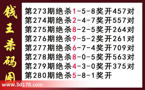 近期3d钱王杀码具体详情: