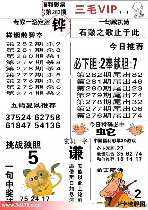 3d第2018282期三毛VIP详解:
