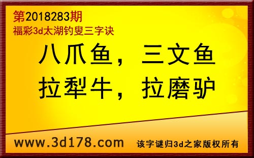 3d第18283期太湖字谜:八爪鱼,三文鱼,拉犁牛,拉磨驴