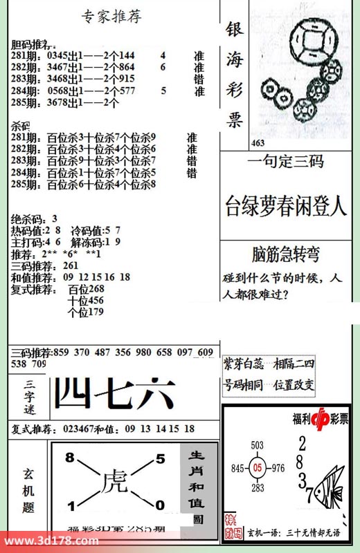 285期:百位杀6 十位杀4 个位杀8