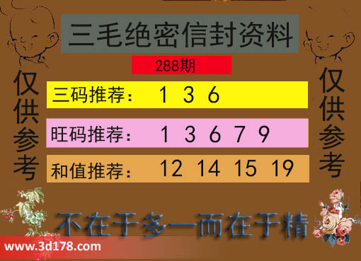 福彩3d第18288期三毛绝密信封资料图详解: