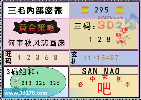 3d之家3d第2018295期三毛内部密报图详解: