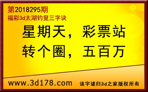 3d第18295期太湖字谜:星期天,彩票站,转个圈,五百万