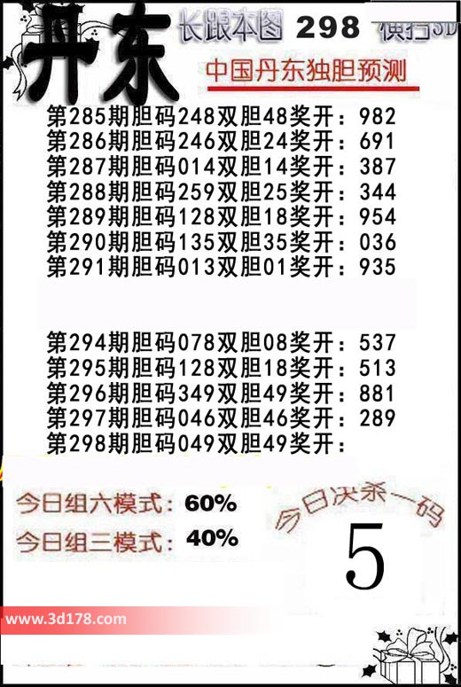 福彩3d第2018298期丹东解析: