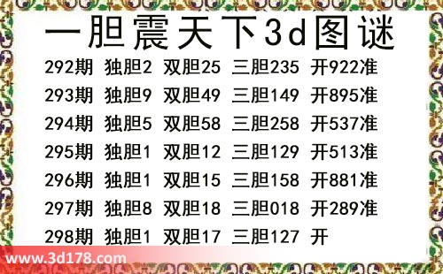 本期一胆震天下3d图谜: