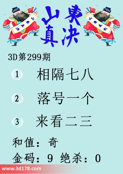 福彩3d第18299期山东真诀图如下所示: