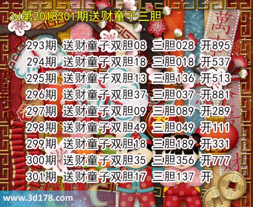 胆码图库3d第2018301期送财童子图: