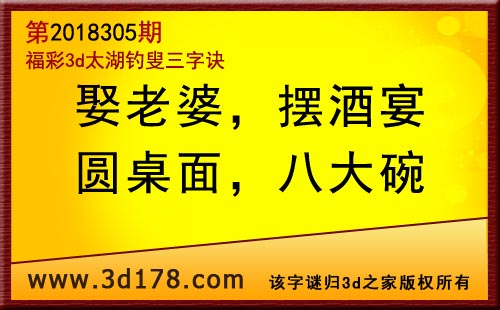 3d第18305期太湖字谜:娶老婆,摆酒宴,圆桌面,八大碗