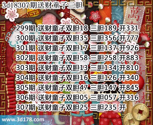 下面我们一起来回顾一下3d之家胆码图送财童子三胆近期推荐详情:
