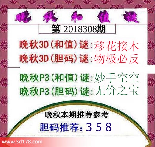 晚秋3D(和值)谜:移花接木