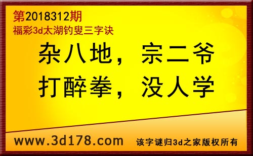 3d第182312期太湖字谜:杂八地,宗二爷,打醉拳,没人学