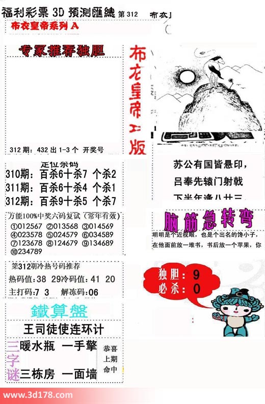 福彩3d第2018312期布衣皇帝A版布衣专家独家推荐: