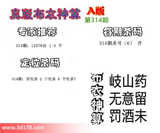 3d之家布衣图库之布衣神算图第2018314期详解: