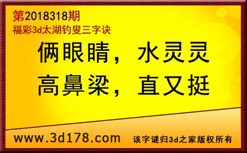 3d第18318期太湖字谜:俩眼睛,水灵灵,高鼻梁,直又挺