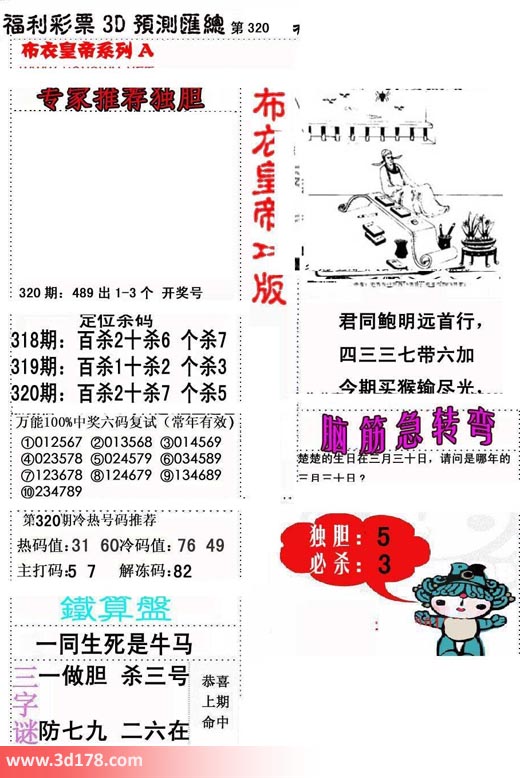 福彩3d第2018320期布衣皇帝A版布衣专家独家推荐: