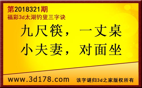 3d第18321期太湖字谜:九尺筷,一丈桌,小夫妻,对面坐