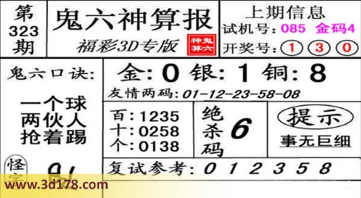 3d第18323期鬼六神算报为您推荐鬼六口诀: