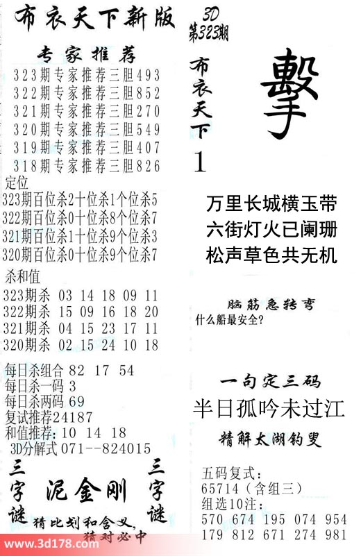 福彩3d第2018323期福彩3d布衣天下新版: