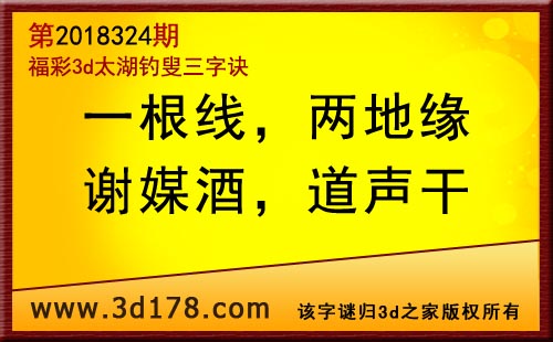 3d第18324期太湖字谜:一根线,两地缘,谢媒酒,道声干