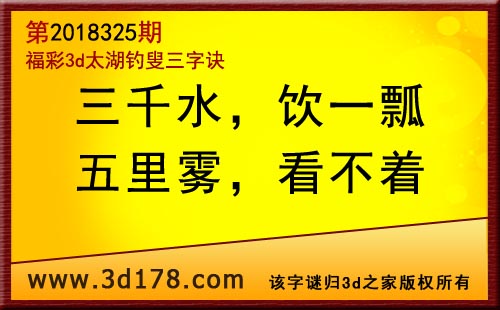 3d第18325期太湖字谜:三千水,饮一瓢,五里雾,看不着